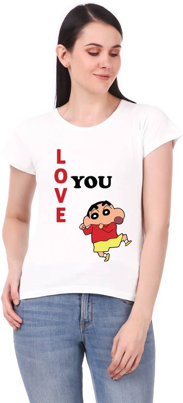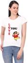 Women Printed Round Neck Cotton Blend White T-Shirt