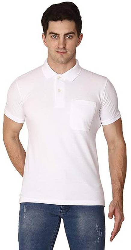 prem kumar Men Solid Polo Neck Pure Cotton White T-Shirt