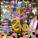 Happy Birthday Decoration Kit for Second Birthday Girl - Multi Color Happy Birthday Foil Banner + Happy Birthday Banner + 2nd No Foil Banner 32 inch + Cake Foil Balloon + Bottle Foil Balloon + Unicorn Foil Balloon + Prince Foil Crown Balloon + Multi color Metallic Balloons 60 Pcs + LED Light Combo - Pack of 83