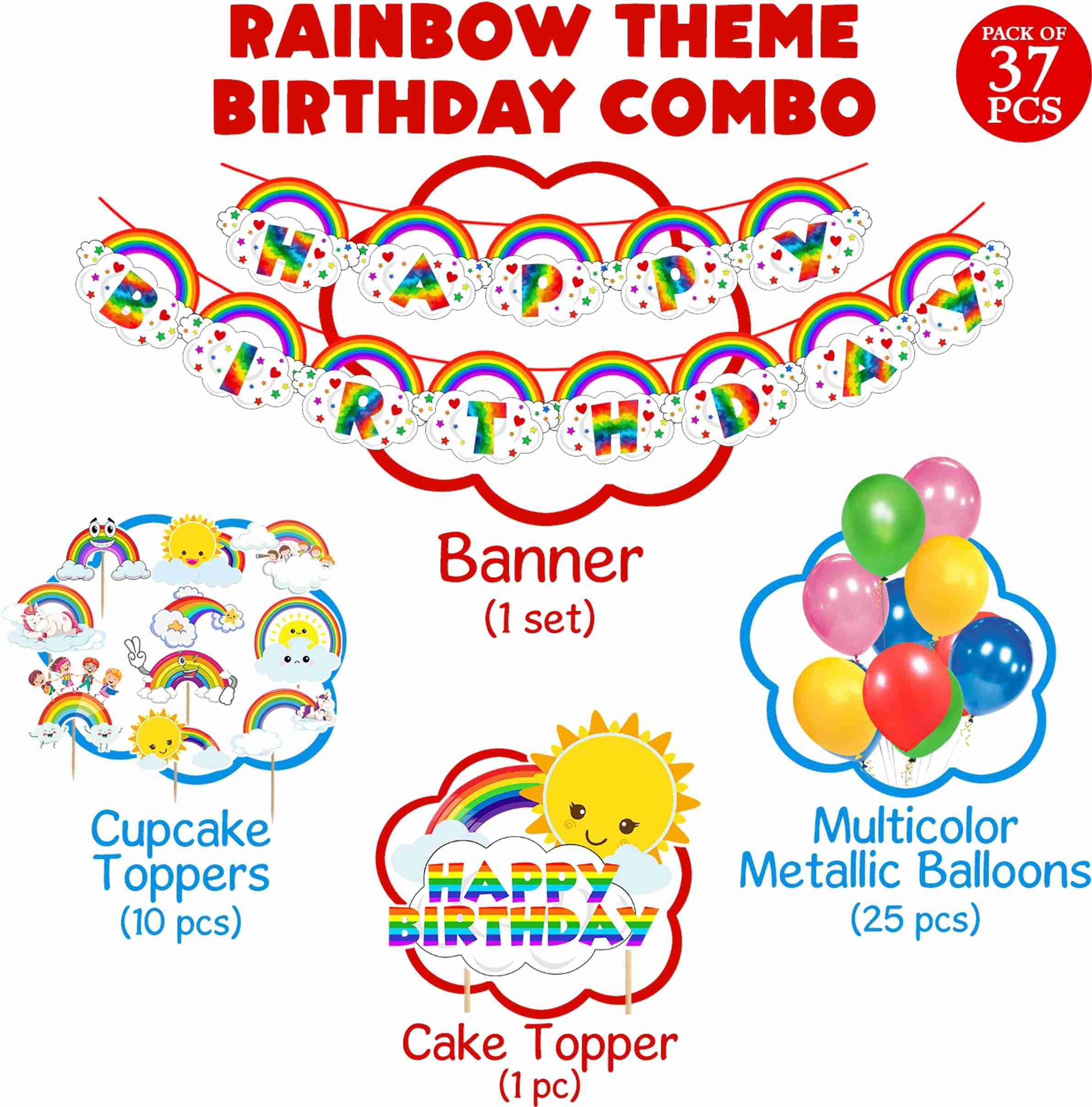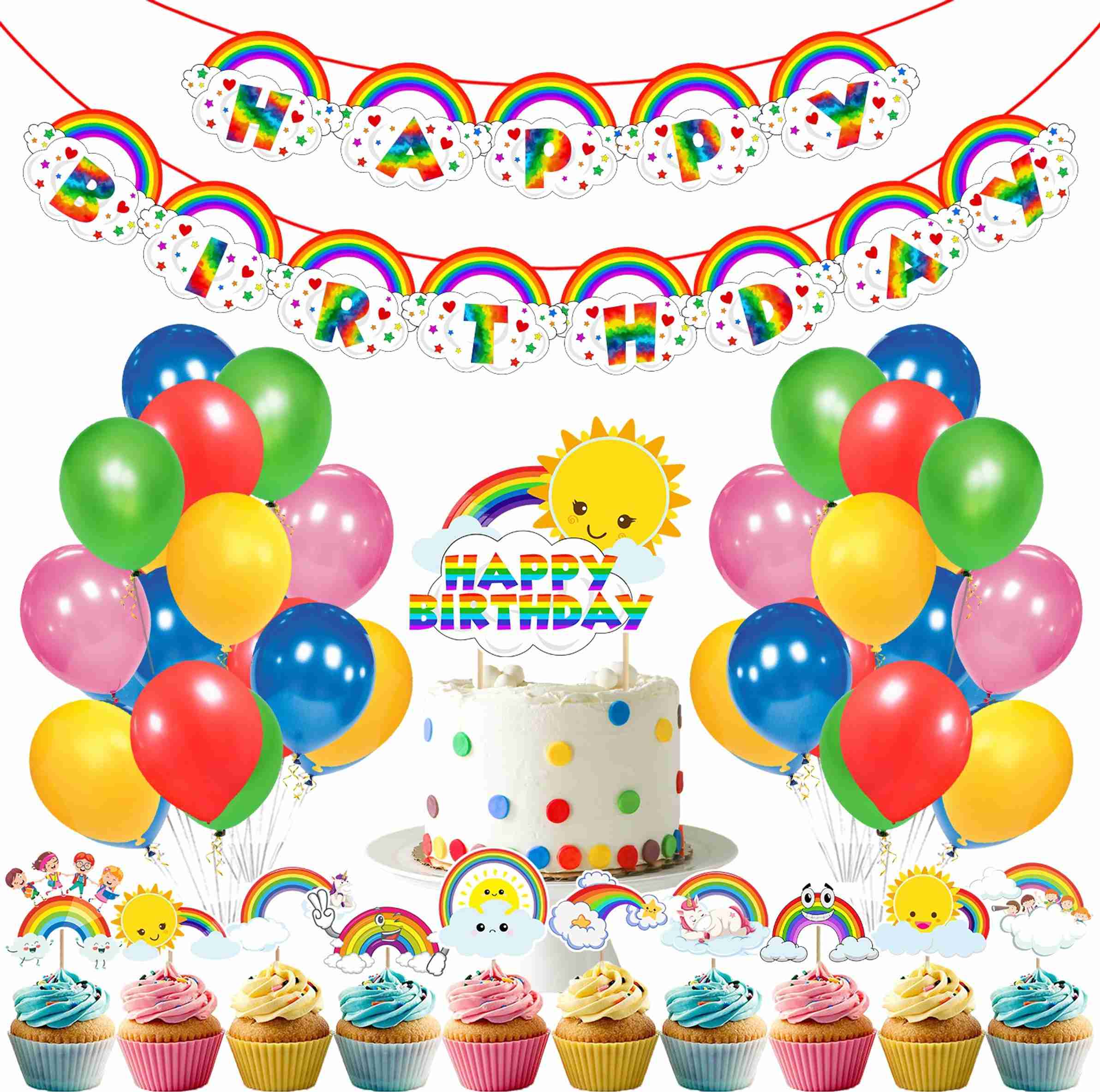 Rainbow Party Decoration Set Rainbow Themed Party Kit For Girls' (Set of 37)