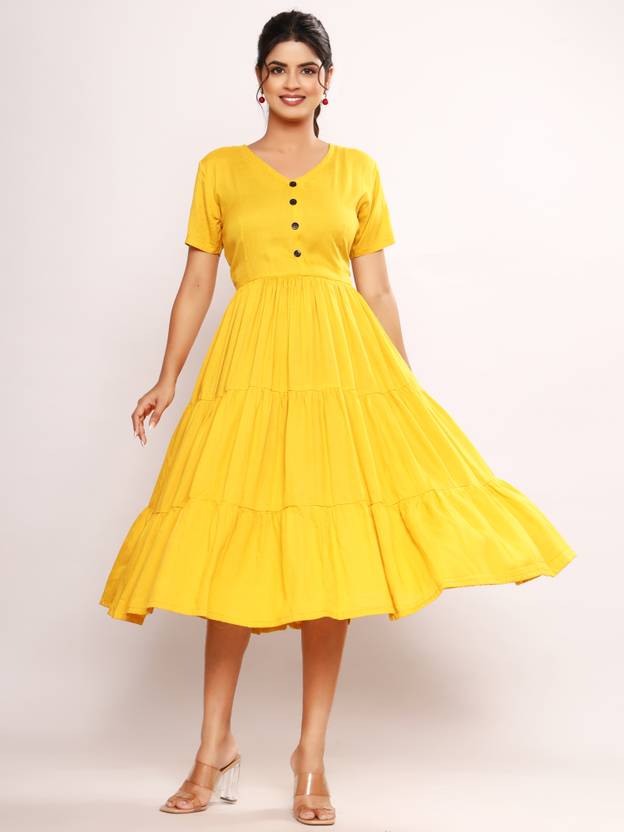 नेचुरल कलर टीयर्ड ड्रेस के साथ फैब्रिक रेयॉन डाइंग