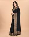 सॉलिड/प्लेन, सेल्फ डिज़ाइन, टेंपल बॉर्डर, बुना हुआ, एम्ब्रॉइडरेड बनारसी टसर सिल्क साड़ी (काला)