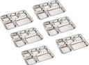 This set of 6 plates is made with standard Stainless Steel. The material gives a classy and sparkly appearance. It is non-corrosive and food safe as well. The stainless compartment thali is scratch and chip-resistant, which makes it a handy choice for indoor as well as outdoor use.