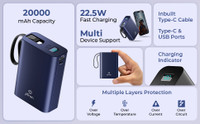 Stay powered anywhere with this 20000mAh high-density battery power bank. Designed for maximum backup, it keeps your smart devices running on the go. Plus, it is compact yet powerful and it fits in your pocket while delivering reliable, long-lasting energy.