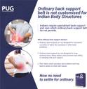 PUG बैक सपोर्ट बेल्ट, अन्य देशों (115%) की तुलना में भारतीयों (51%) के बीच प्रचलित पुराने कम पीठ दर्द को दूर करने के लिए भारत के लिए दर्जी। वाइडर हिप्स और यूनिक बॉडी स्ट्रक्चर्स के साथ, भारतीयों को अत्यधिक रीढ़ की हड्डी के कर्वेचर और स्पॉन्डिलोलिस्थेसिस जैसी समस्याओं का सामना करना पड़ता है, जो जेनेटिक्स, सेडेंटरी लाइफस्टाइल और अनुचित आहार से उत्पन्न होता है। लंबे समय तक काम करने के घंटों से इंटेंस फिजिकल स्ट्रेन्स, हैवी लिफ्टिंग, ख़राब पोस्चर्स और नींद के दौरान या बैठने के दौरान अपर्याप्त सपोर्ट इस समस्या में योगदान देता है। हमारा एर्गोनॉमिक रूप से डिज़ाइन किया गया PUG बैक सपोर्ट बेल्ट तनाव के दौरान पीठ दर्द के लिए राहत और समर्थन प्रदान करता है, पीठ के निचले हिस्से और पेट को लक्षित करता है, और लचीलेपन के साथ बड़ी कमर की परिधि को एडजस्टेबल करता है। ऑप्टीमल कम्प्रेशन, अनरेक्टेड मूवमेंट और दैनिक कार्यों के दौरान बेहतर मोबिलिटी के साथ दर्द मुक्त जीवन शैली का अनुभव करें। आधुनिक भारत की तेज-तर्रार जीवन शैली के लिए बनाया गया, हमारा समाधान सेडेंटरी लाइफस्टाइल के जोखिमों का मुकाबला करता है, निशान छोड़े बिना लंबे समय तक पहनने और आपकी गतिविधियों में आराम प्रदान करता है। ब्रीदेबल, एक्स्ट्रा कुशन पैडिंग के साथ अनोखे आराम का अनुभव करें जो फ्रिक्शन को कम करता है, पसीने को सोख लेता है, और त्वचा की जलन और रैशेस को रोकता है। डबल पुल मैकेनिज्म और बड़ा हुक लूप पैनल कंट्रोल्ड कम्प्रेशन और साइज़ फ्लेक्सिबिलिटी प्रदान करता है, जिससे बेल्ट हल्का, टिकाऊ और उपयोग में आसान हो जाता है। इंटीग्रेस हेल्थ द्वारा पग बैक सपोर्ट बेल्ट के साथ बेजोड़ देखभाल की खोज करें, जो भारत में हजारों डॉक्टरों द्वारा रेकमेंडेड है। इसकी क्वालिटी पर भरोसा करें और अपने पूरे जीवन यात्रा के लायक आराम और समर्थन का अनुभव करें। पीठ दर्द को अलविदा कहें और हमारे भरोसेमंद पग बैक सपोर्ट बेल्ट के साथ दर्द मुक्त, सक्रिय जीवन को अपनाएं।