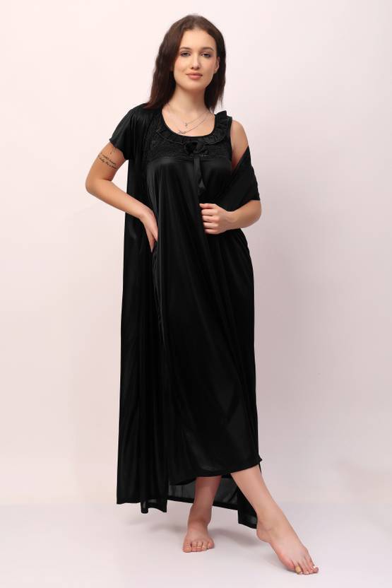 Pack of 2 Women Nighty with Robe (Black)