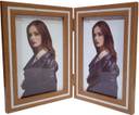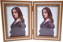 A wooden photo frame with 2 facing sides (folding) to hold any couple's or pair's photographs.
