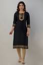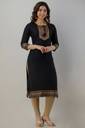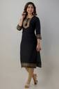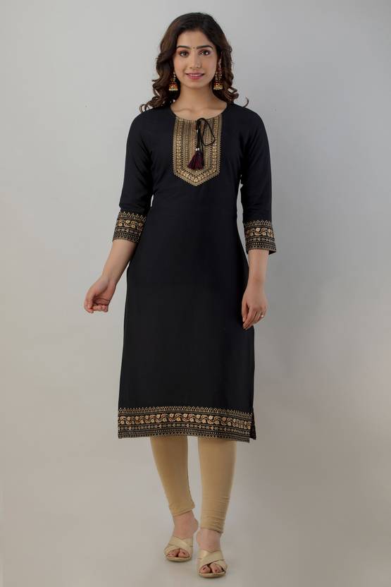 Women Self Design Viscose Rayon Straight Kurta (Black)