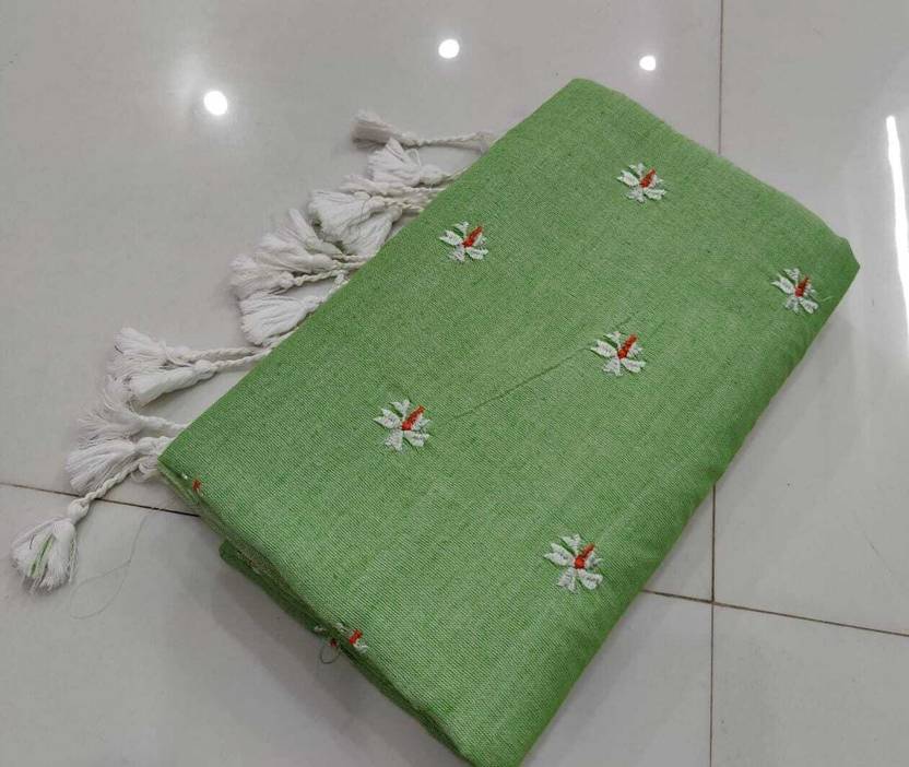 Moumitasaree Floral Print Tant Pure Cotton Saree (Green)