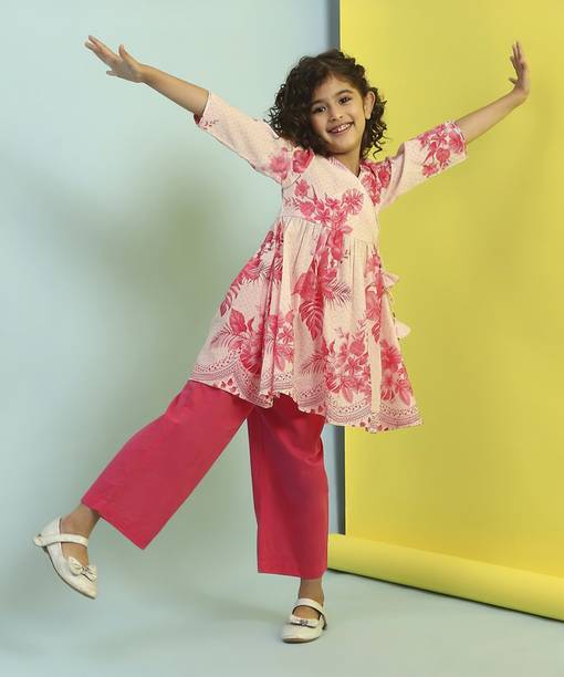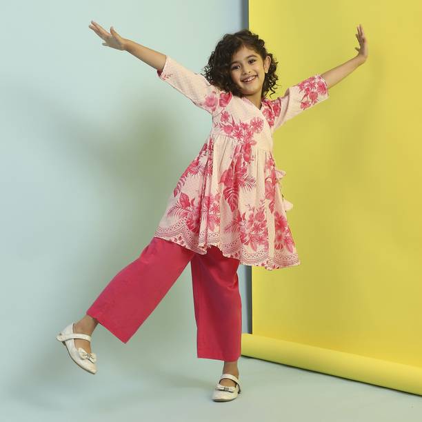 Indi लड़कियों के लिए कैज़ुअल कुर्ता और ट्रॉउज़र सेट