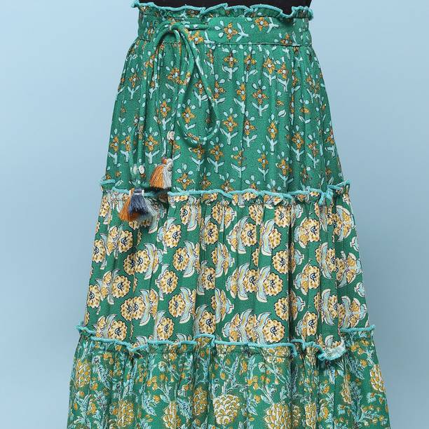 लड़कियों के लिए प्रिंटेड फ्लेयर्ड हरा स्कर्ट