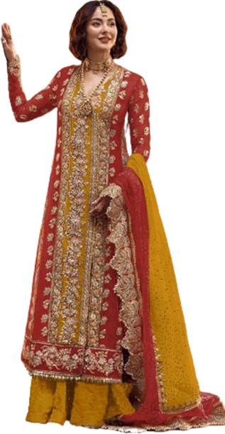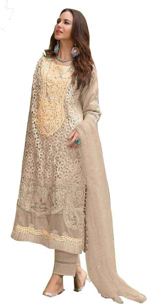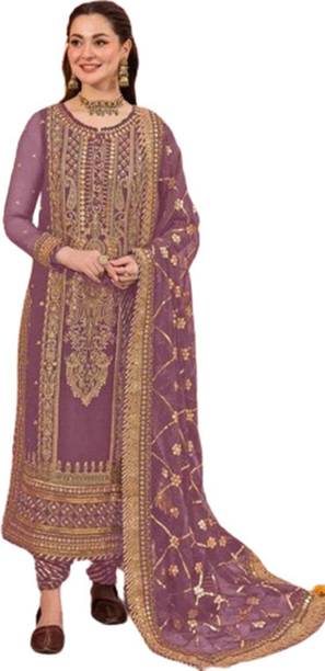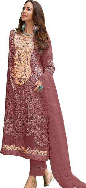 Semi Stitched Organza Salwar and Dupatta Material Embro...