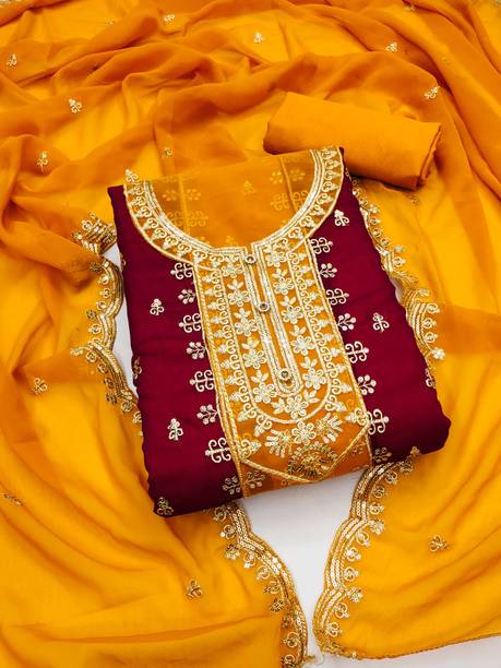 Unstitched Georgette Salwar Suit Material Embroidered