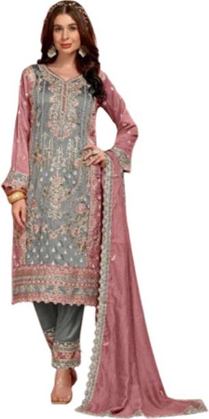 Semi Stitched Georgette Salwar Suit Material Embroidere...
