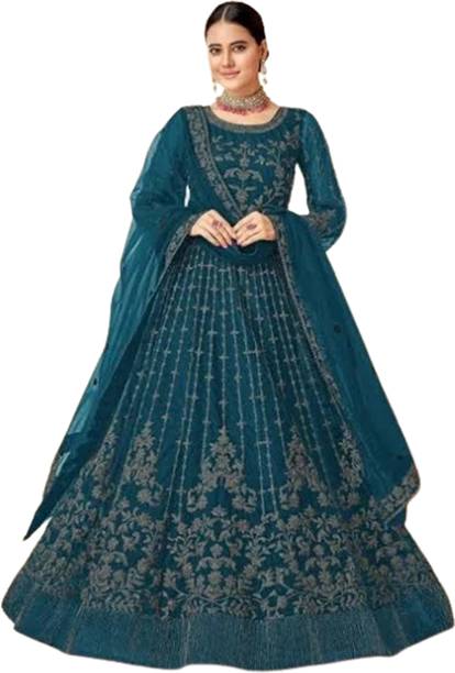 Semi Stitched Net/Lace Salwar Suit Material Embroidered