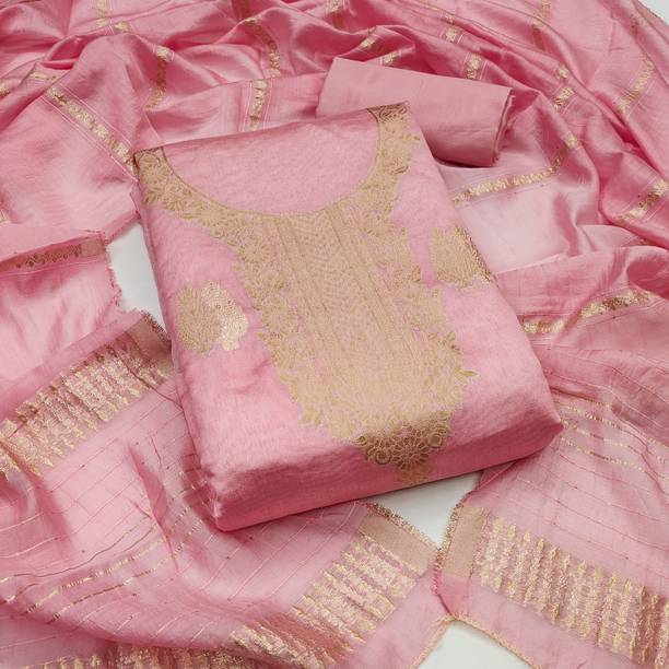 Unstitched Chanderi Salwar Suit Material Embroidered