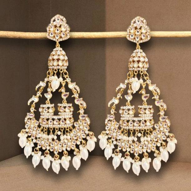 Traditional Long Golden Chandbalis Alloy Chandbali Earr...