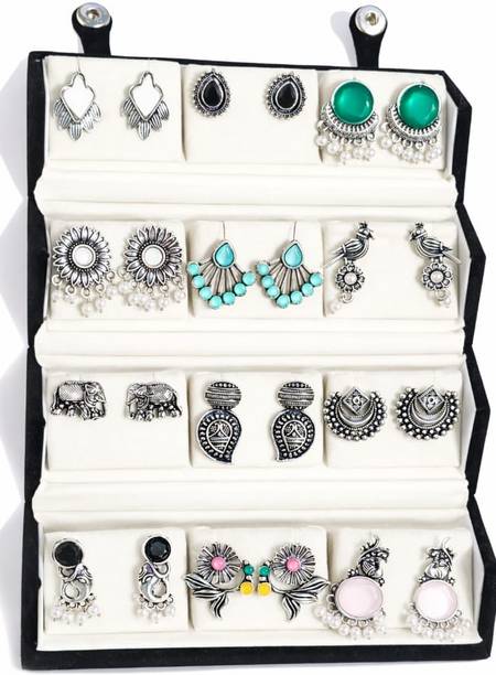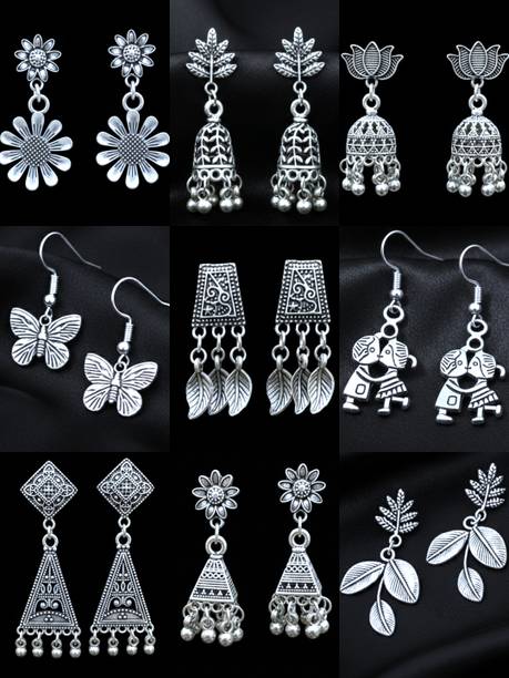 Pack of 9 Traditional Oxidised Silver Earrings Combo fo...