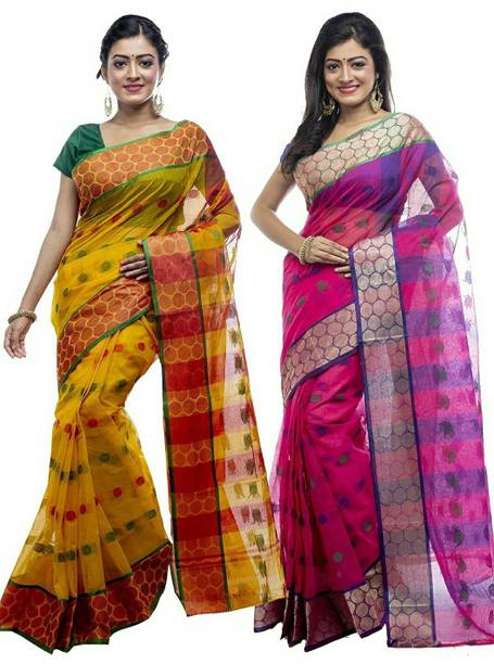बुना हुआ तांत कॉटन लिनेन साड़ी