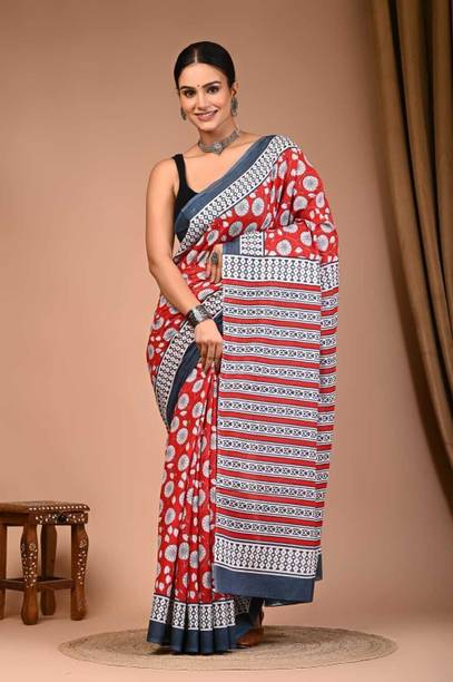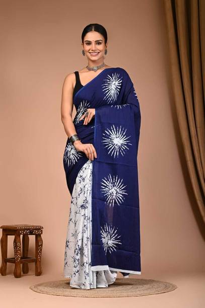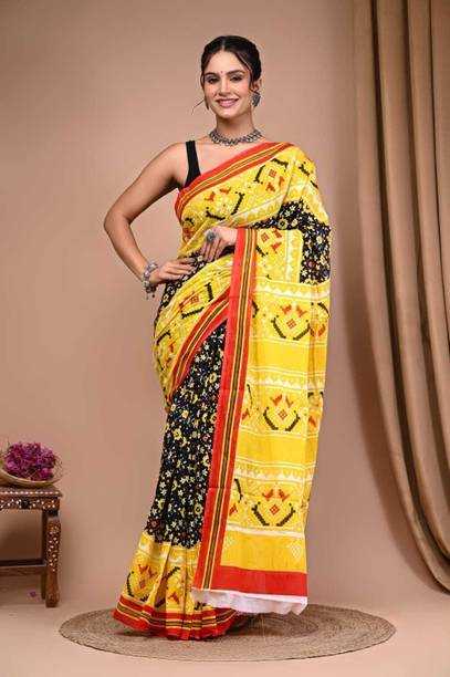 प्रिंटेड तांत कॉटन सिल्क साड़ी