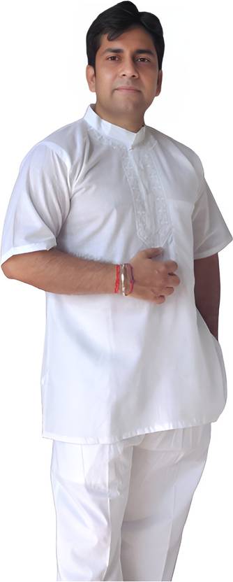 White Chikankari Cotton Short Kurta for Men | Summer Kurta for Men