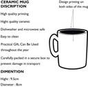 Best Quality Ceramic Mug. This mug is made up of fine quality ceramic material which is microwave and dishwasher safe. Beautiful printed the mug is permanent and fade-proof. Kick start your day with a sip of your favorite coffee in this lovely mug. Mugs can be bought in several of designs and it is a great idea to have a collection of them. A perfect gift for any occasions. This attractive mug will enhance the style quotient of any space. It will also attract a lot of attention from your friends and will hence prove to be a great gifting option too. The mugs holds 350 ml and is the perfect companion for drinking coffee, tea or green tea.