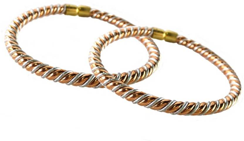 सिल्वर, तांबा सिल्वर, गोल्ड प्लेटेड कड़ा (2 का पैक)