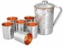 Steel Copper Emboss Water Jug with 6 Glasses. It Uses world s finest technology and copper to manufacture the Jug. In Regular Usage, it has lot of Health Benefits Main Benefits are It Helps In Weight Loss, Simulates Brain, Kills Bacteria In the Water, Maintains Digestive System, Prevents Diabetes and other 20 Reasons/Benefits to Buy this Glass, The best part about this water is that it never becomes stale and can be stored this way for long periods of time. There are unlimited health benefits of drinking water from copper glass. Drinking water in a copper glass will help to curb digestive issues by killing harmful bacteria and reducing stomach inflammation. Copper also helps cleanse and detox your stomach, regulate the working of your liver and kidneys, and proper elimination of waste and ensures the absorption of nutrients from food. According to Ayurveda, if you want to detox your stomach, drink a large glass of water that has been stored in a copper vessel, early in the morning on an empty stomach.