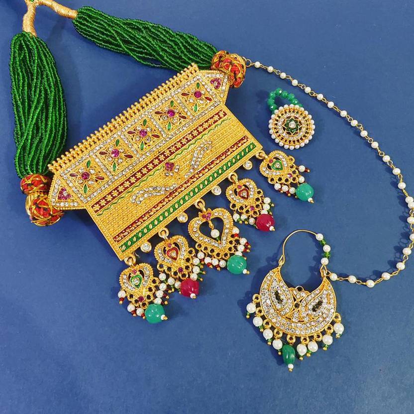 RAJASTHANI GAHANA Alloy Gold-plated Green Jewel Set (Pack of 1)