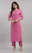 Women Cotton Blend Kurta Pant Dupatta Set