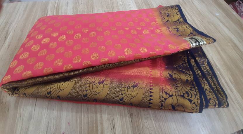 Woven Kanjivaram Silk Blend Saree (Pink)