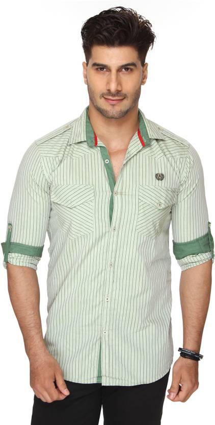 Ramarrow Men Slim Fit Striped Ribbed Collar Casual Shirt