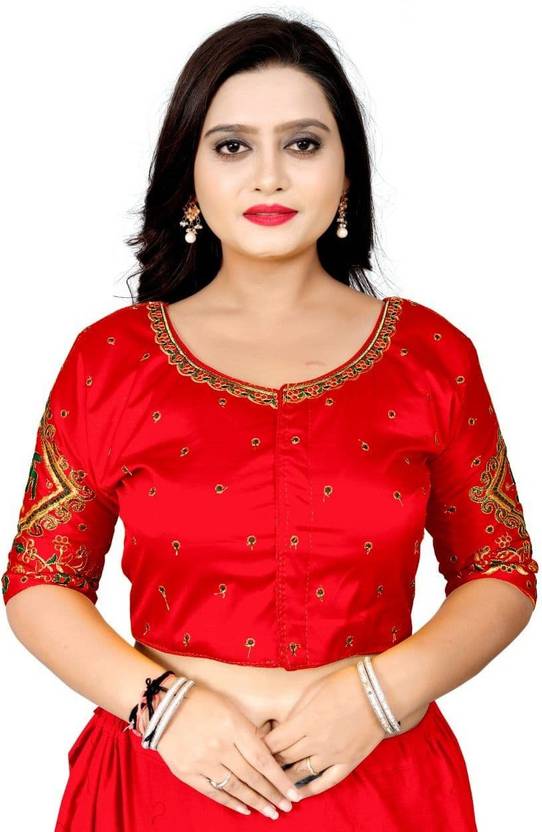 ramdev creation Unstitched Satin Blouse Material Embroidered