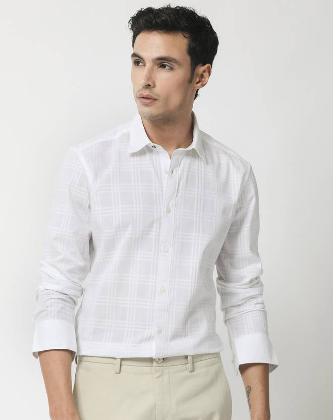 RARE RABBIT पुरुषों के लिए धारीदार फॉर्मल सफेद शर्ट