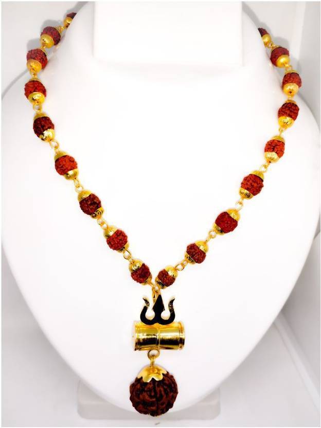 राशि फैशन Shiv Shakti Kavach 5 Mukhi Rudraksha Mala With Shiv Trishul Damru गोल्ड प्लेटेड लकड़ी नेकलेस