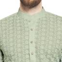 This knee-length Ethnic kurta from Rati international comes with a mandarin collar and long sleeves which makes it perfect for different occasions. The delicate weaving work on the kurta set enhances your overall traditional look and makes you the center of attraction on every occasion.To complete the look, adorn a mojarra or juttis for men stylish. Chikankari kurta set