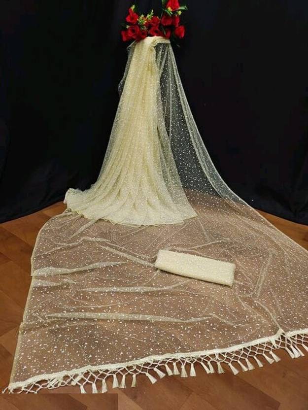 Ratri Kapda Self Design Bollywood Net Saree (Cream)