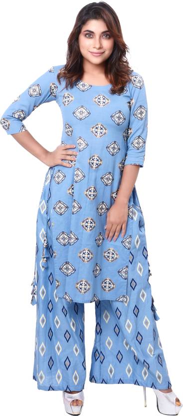 Women Cotton Blend Kurta Palazzo Set