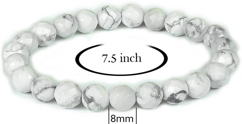 Stretchable Elastic Handmade Natural Certified Howlite Bracelet | Diameter : 2.5 Inch. | Stone Size - 8 mm | Shape - Diamond Cut