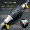 Siphon Suction Pump, Gas Oil Fluid Liquids Water Transfer Pump From: - The Way To Use: - First, insert the hose into the liquid which needs be extracted. Next, squeeze the rubber pump to remove the air inside,then use your fingers to block the outlet of the hose and release the rubber pump (please keep the arrow on the rubber pump down). After the pump is restored to its original state and the liquid is pumped up to fill the rubber pump, loosen the finger which is blocking the outlet.Repeat the operation 1-2 times to form a continuous flowing. Please keep the rubber pump as low as possible below the inlet position. - Specification Length of oil pipe: 200cm Hose outer diameter: 18mm Hose inner diameter: 14mm Hose thickness: 2mm- Tips- To extract the oil in the fuel tank of the car, the following conditions must be met: - 1.There is no anti-pumping filter in the fuel tank. - 2.The pipe should be inserted into the fuel tank when pumping oil. - Package List- 1 set = 1 pneumatic pump + 1 pipe of 2 meters + 2 buckles