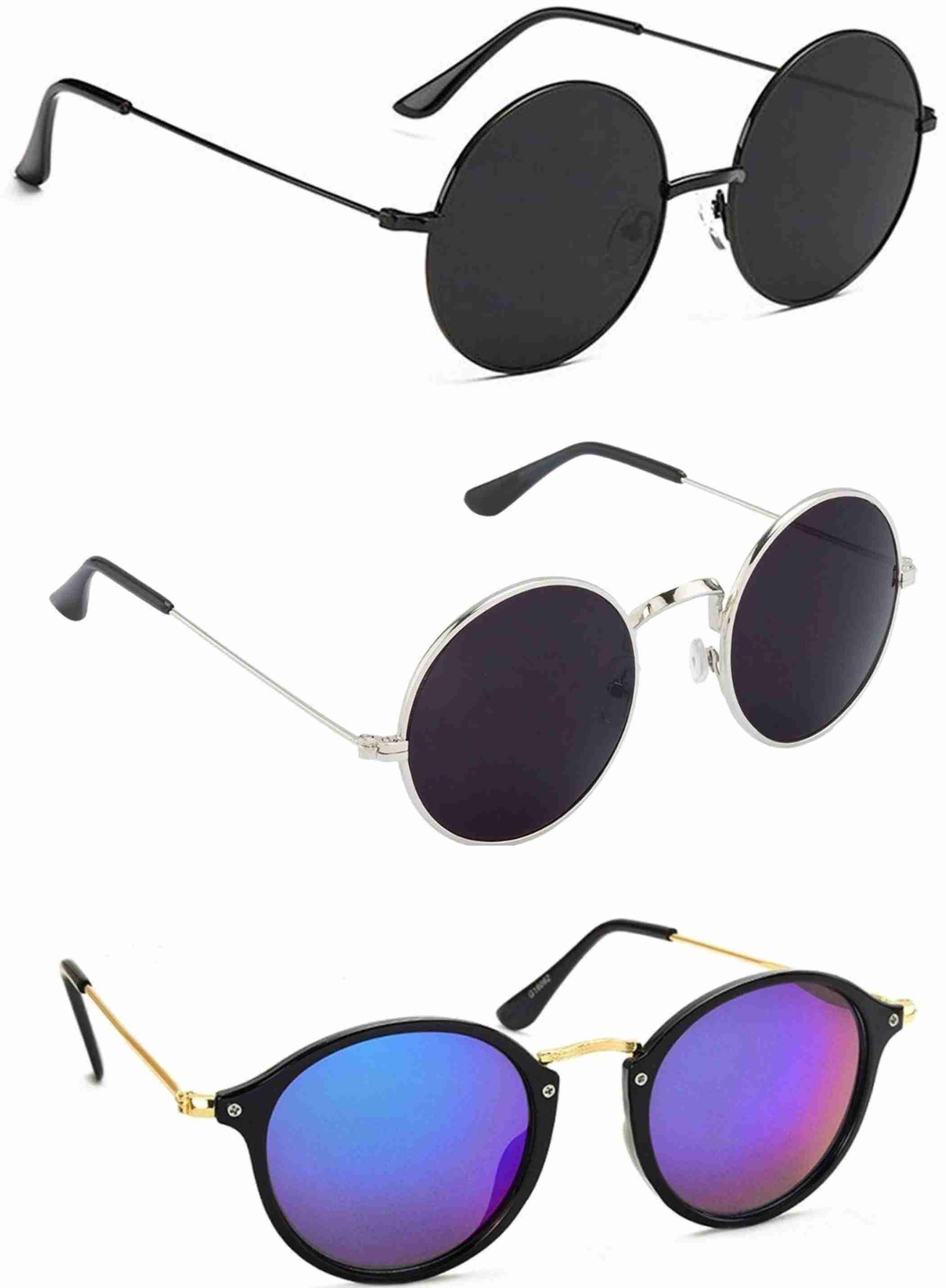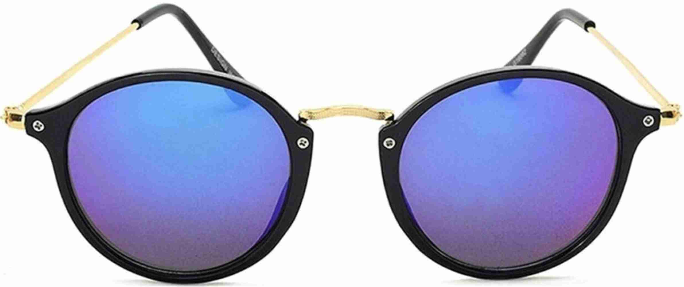 Mirrored Round Sunglasses (50) (For Men, Black)
