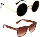 रिच क्लब UV प्रोटेक्शन राउंड, वेफेयरर सनग्लास ( पुरुषों और महिलाओं के लिए, काला, भूरा)