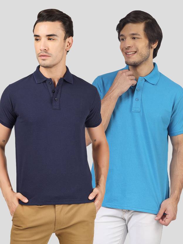 Richard Paadler Pack of 2 Men Solid Polo Neck Cotton Blend Blue T-Shirt