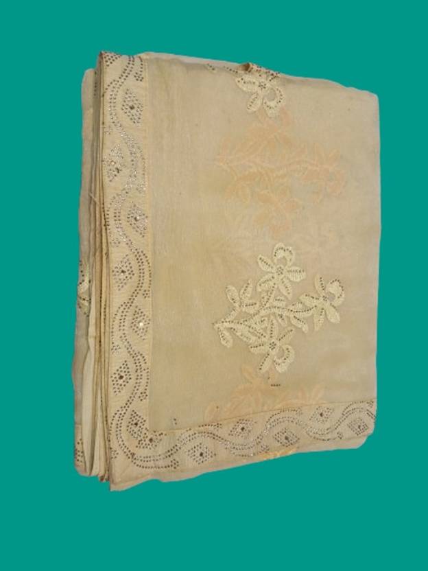 Embroidered Bollywood Chiffon, Pure Silk Saree (White)
