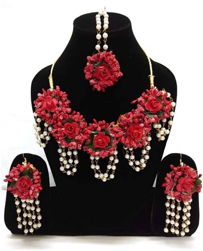 रिया हैंडक्राफ्टेजवेली फैब्रिक, प्लास्टिक, पेपर ज्वेल सेट (लाल)