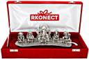 RKONECT Silver 5 Musician Ganesha Idols On Banana Leaf WIth 6 Piece Hand Diya Under Box Decorative Showpiece - 27 cm (Silver Plated, Metal, Silver)