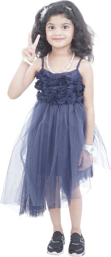 rmlifestlye Girls Below Knee Party Dress (Blue, Sleeveless)