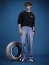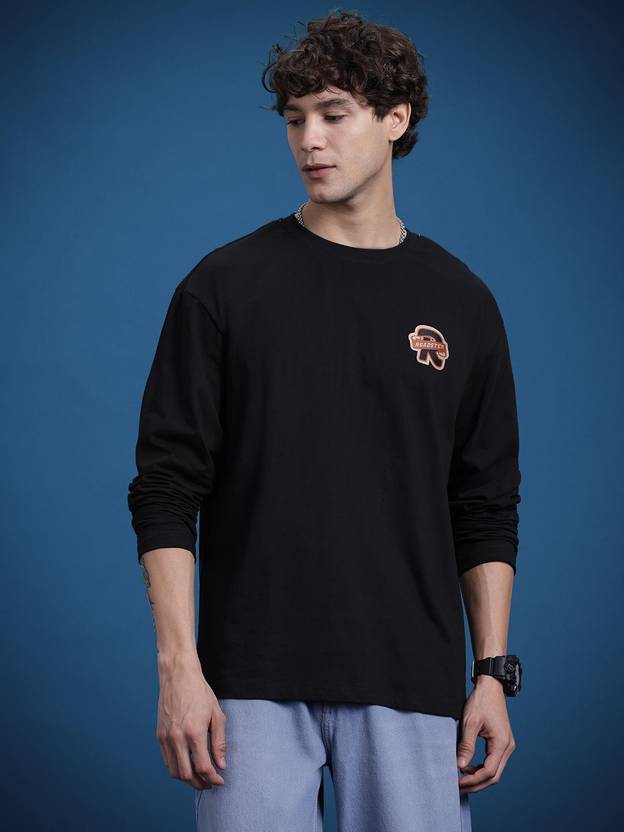 रोडस्टर पुरुषों के लिए गोल गला प्रिंटेड काला टी-शर्ट