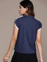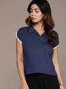 महिलाओं के लिए सॉलिड पोलो नेक नीला टी-शर्ट