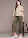रोडस्टर महिलाओं के लिए गोल गला धारीदार गुलाबी टी-शर्ट